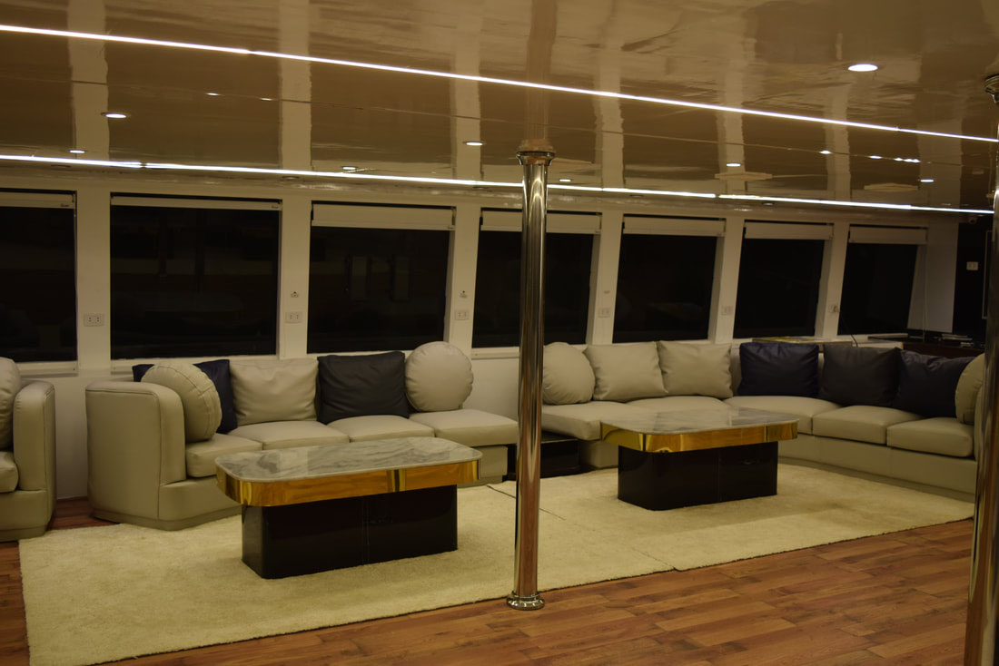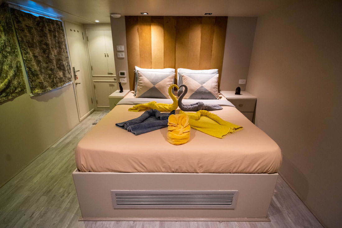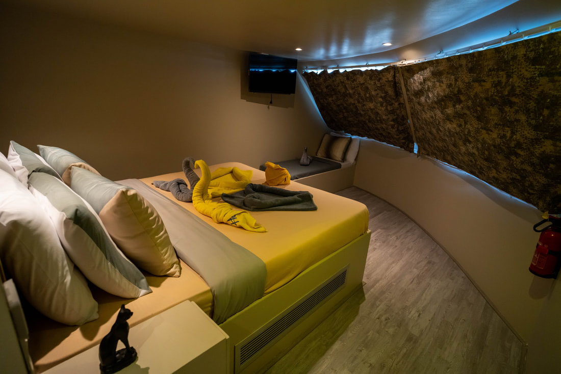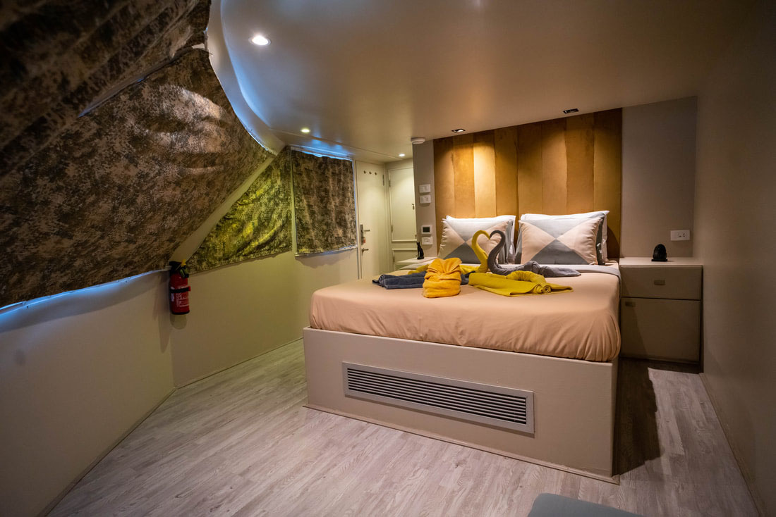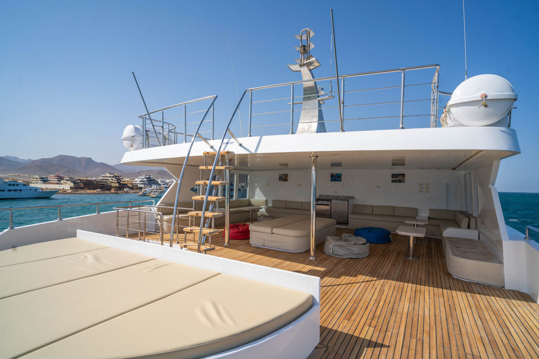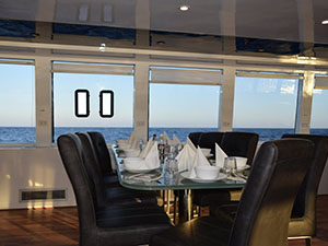 Experience the thrills of the Daedalus reef, Fury Shoal and Elphinstone aboard the beautiful Hammerhead II, a 5 deck luxury diving liveaboard safari boat. Equipped with 16 spacious cabins, cleaned daily by our onboard team, it is able to host up to 30 divers per safari. The dive deck on-board is the perfect place to set up your equipment and get prepared for the famous sites or even challenge yourself to a new diving course, such as our new, thrilling scooters! Hammerhead II’s restaurant and dining facilities serve delicious buffet style meals for breakfast, lunch and dinner, while the saloon houses all-day snacks, hot drinks and soft drinks. Whether you are diving into the crystal blue waters or relaxing around the boat, the crew on board will be there to assist you with top-tier service, to guarantee you a memorable experience to reminisce about until your next adventure!